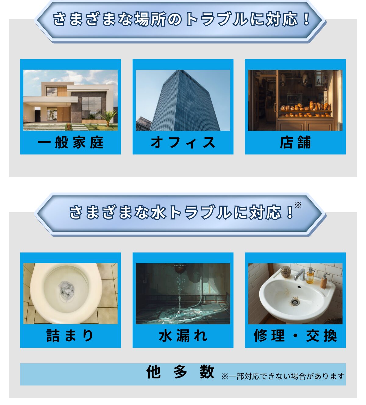 暮らしで起こる水まわりのトラブルを迅速・確実に解決できるよう、