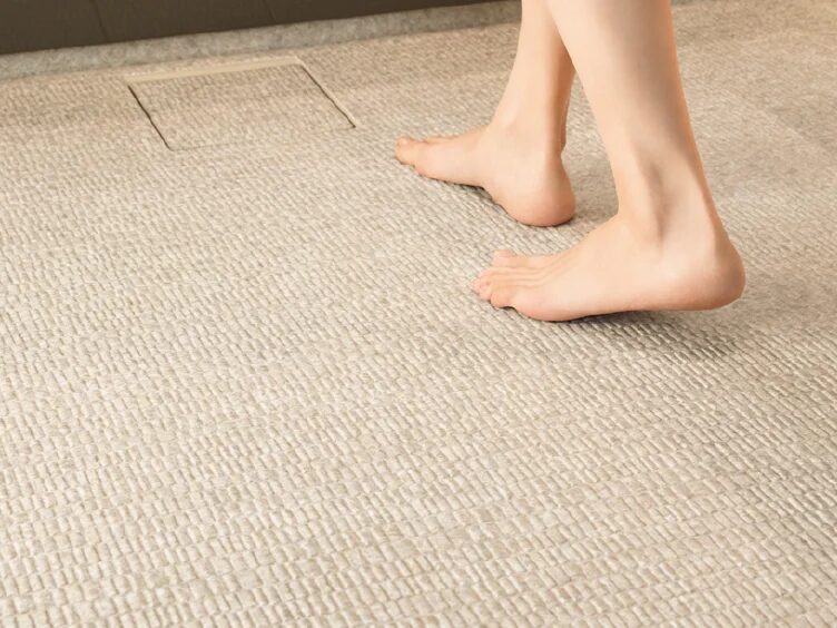 ほっカラリ床は内部にクッション性のある断熱層を含んでいる点が特徴です。この断熱層によって膝を付いても痛くなく、冬場でもヒヤッとしません。冬場のヒートショック対策や転倒時の衝撃軽減にも役立つため、小さな子どもや高齢者のいる家庭にもおすすめです。